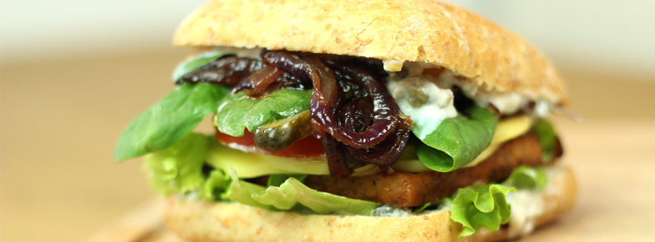 - Pain burger vegan (ici Jacquet ou sans gluten pour les intolérant.e.s)