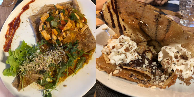 La crêpe salée que je prends quasiment toujours chez La vie est belle c’est celle avec du tofu à la sauce général Tao. Et il y a toujours au moins 2 autres choix végétaliens.