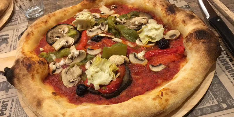 Bon. Comme je le disais c’est un super restaurant très réputé et toujours plein. Cependant, quand on est vegan ou même végétarien, c’est vraiment ultra limité. Quand je vois que la carte est archi pleine avec des risottos, des pâtes et d’autres mets typiques, et qu’au final il n’y a même pas une proposition de pizza végétarienne, ça me désole. La première fois que nous y étions allées, nous ne pensions plus y retourner car une des serveuses m’avait lancé un regard si étonné lorsque je lui ai dit que je ne mangeais pas de poisson non plus… C’est le genre de truc qui me fait fuir ^^.