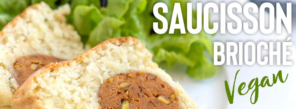 Accompagnez ce saucisson brioché vegan de laitue, de salade de pommes de terre et de cervelle de canut vegan pour une assiette 100 % lyonnaise (de mon livre « 30 jours pour devenir vegan »).