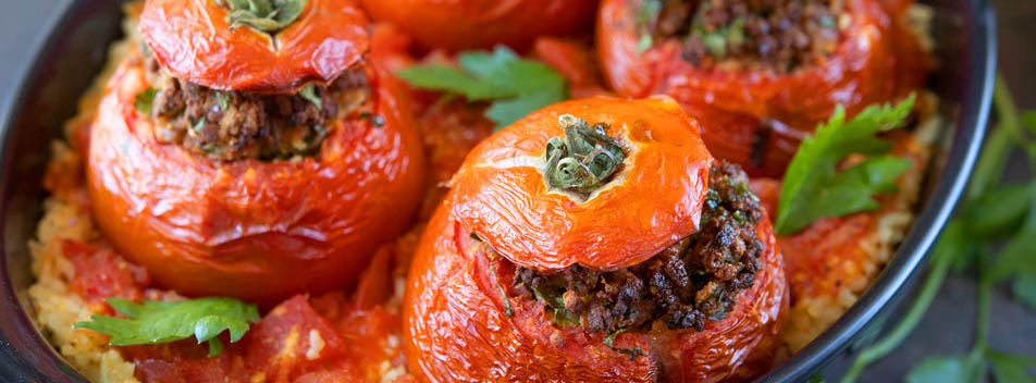 Pour cette recette je vous conseille d’utiliser de belles tomates de saison, mûres mais fermes, pour éviter qu’elles ne craquent lors de la cuisson.